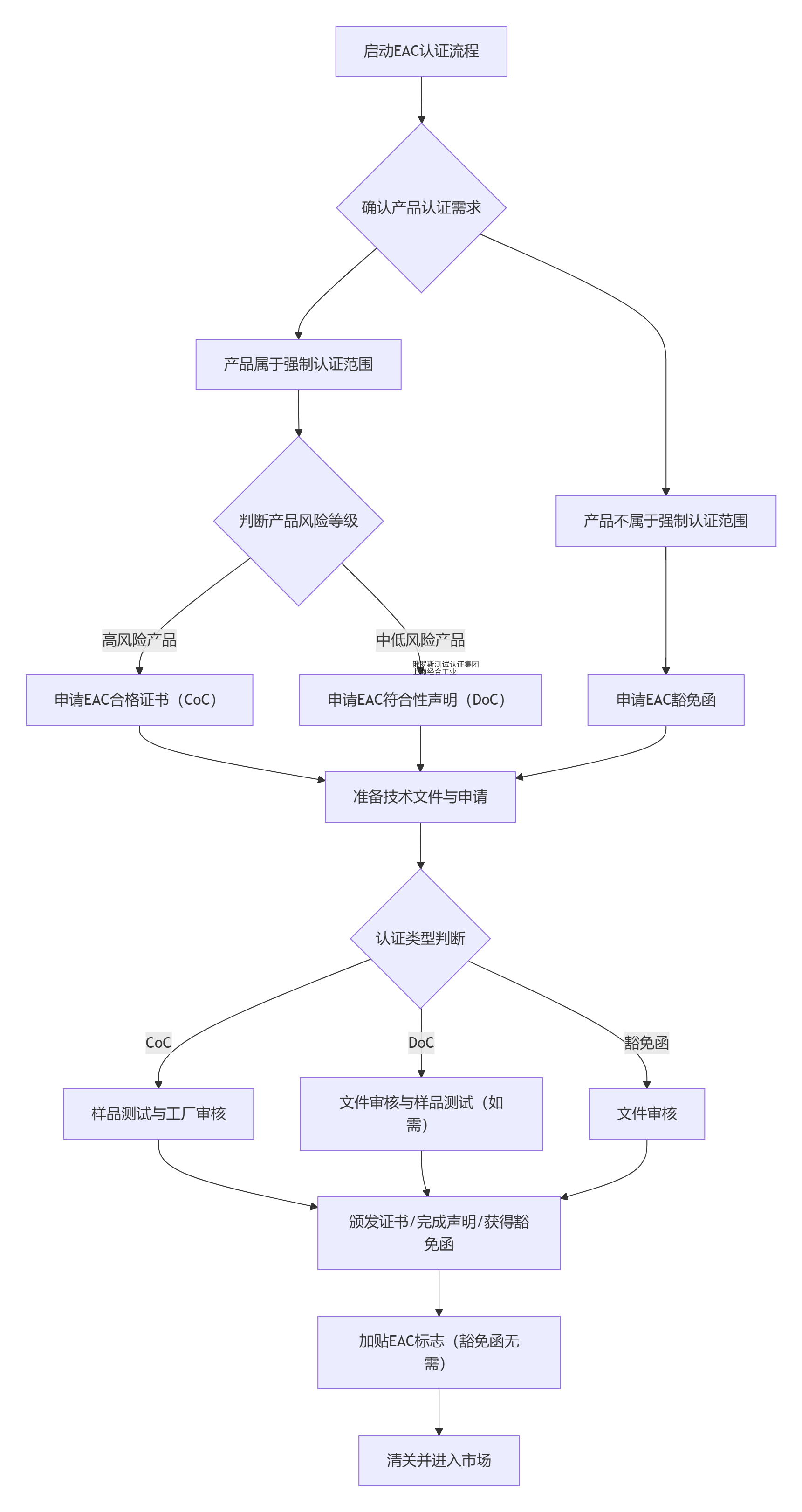 选择正确的认证类型:根据产品风险等级,EAC认证主要分为两种形式 :
