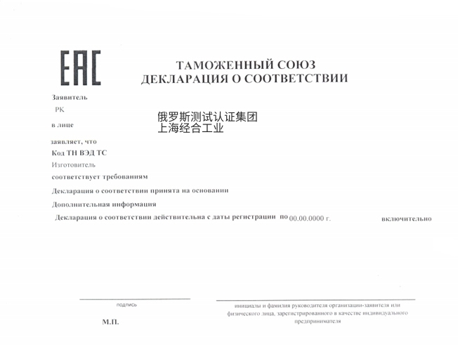 海关联盟EAC符合性声明(海关联盟eac符合性声明)——由制造商/执行方(自行承担责任)签署的统一格式文件,证明产品符合海关联盟技术法规(TR CU)的既定要求。EAC符合性声明是进口、销售和使用产品在关税同盟三国(哈萨克斯坦、俄罗斯和白俄罗斯)境内时必须提供的合规证明之一。