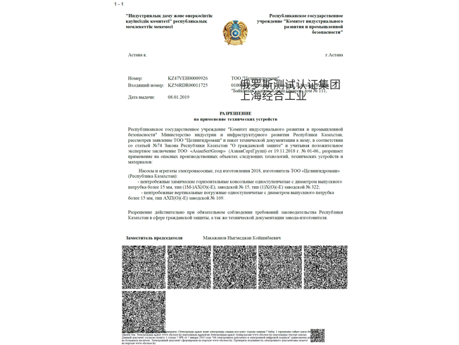 哈萨克斯坦共和国证书(GOST-K)